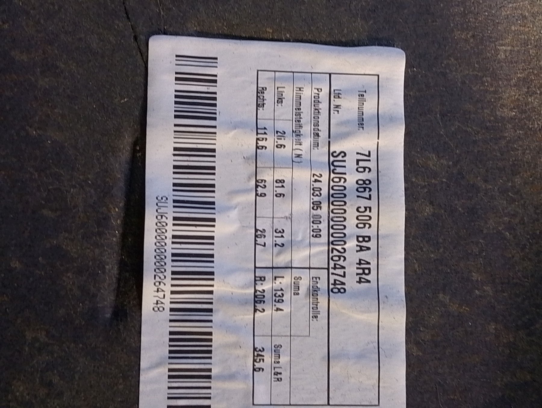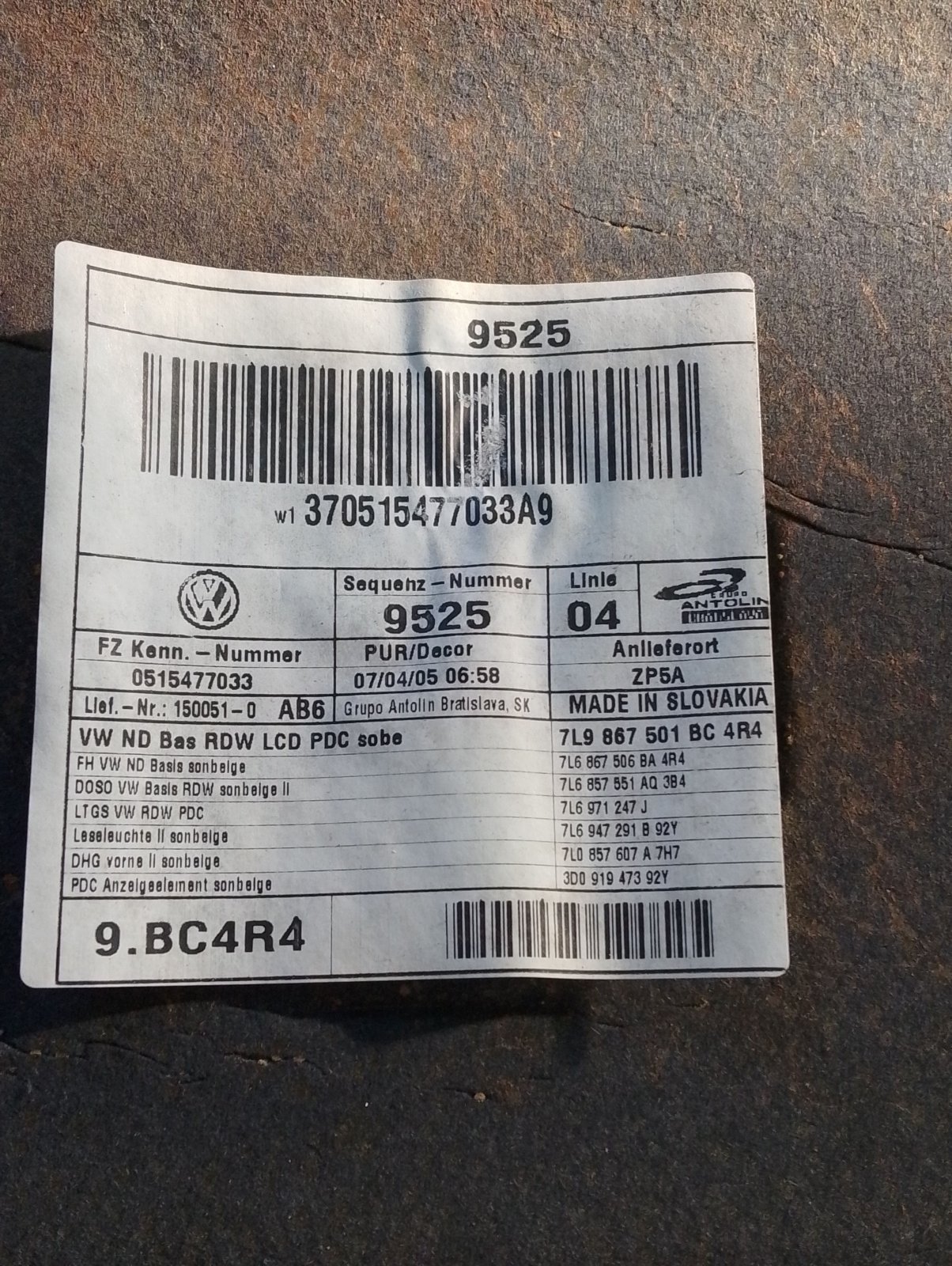 обшивка стелі з люком Volkswagen Touareg I (2002-2010) 7L6867506BA